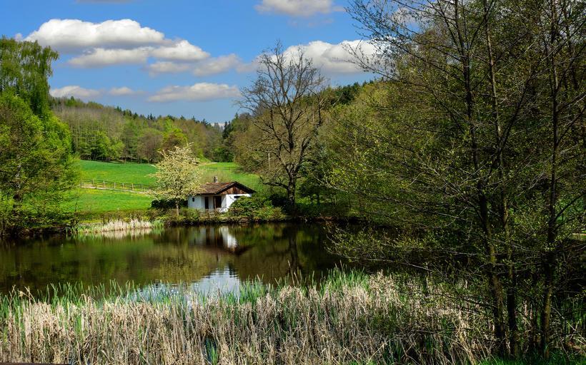 Keywords: thuringia germany thuringian forest landscape forest view pond mosbach scenic sky haus am see