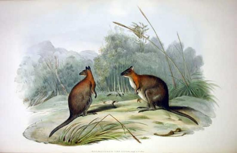 Keywords: Thylogale thetis 2 Gould.jpg Thylogale thetis Mammals of Australia Vol II Plate 32 <br> http //museumvictoria com au/bioinformatics/mammals/images/Hal_thet htm 1863 Creator John Gould PD-Old PD-old-100 Thylogale thetis The Mammals of Australia John Gould Kangaroos in art |