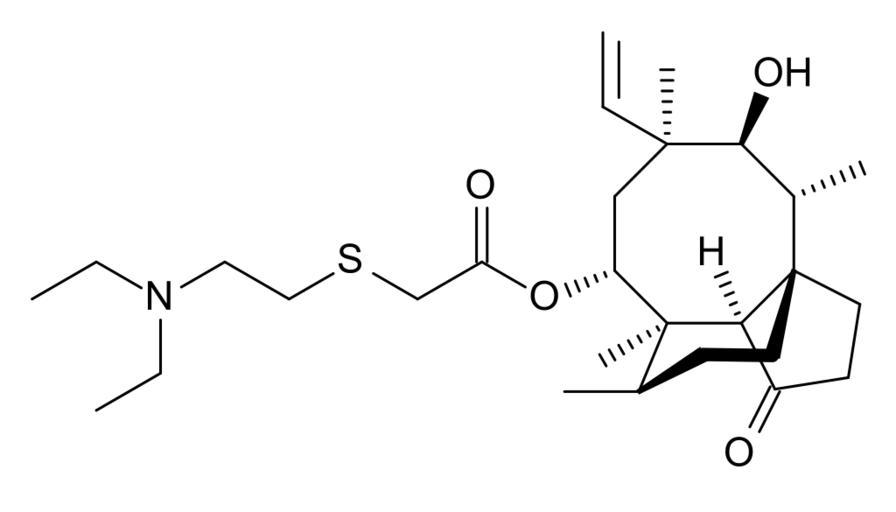 Keywords: Tiamulin skeletal.svg tiamulin own Anypodetos 2009-11-07 BKchem 001 -check Antibiotics Diterpenes Carboxylate esters Tertiary amines