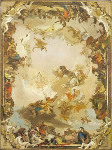| Keywords: Tiepolo, Giovanni - Apollo und die vier Kontinente - 1752 - v.2.jpg Artwork Creator Giovanni Battista Tiepolo 1752 Oil on canvas cm 185 4 139 4 Institution Metropolitan Museum of Art Gallery 622 object history credit line EVROPA / AFRICÆ / AMERICA / ASIA http //www metmuseum org/toah/works-of-art/1977 1 3 www metmuseum org Scan settings million colors 220dpi accession number 1977 1 3 own Book scan Heimberger Werner und Staschull Matthias Tiepolos Welt Das Deckenfresko im Treppenhaus der Residenz Würzburg München Bayerische Schlösserverwaltung 2006 1 Auflage ISBN 3-932982-73-8 S 22 <gallery> File Tiepolo Giovanni - Apollo und die vier Kontinente v 1 - 1752 jpg File Giovanni Battista Tiepolo - Allegory of the Planets and Continents jpg </gallery> PD-old-100 See also Category Treppenhaus Residenz Würzburg Deckenfresco Allegorical paintings by Giovanni Battista Tiepolo Apollo und die vier Kontinente 1752 oil on canvas paintings in the United States 18th-century allegorical paintings Paintings of cornucopia Italian Rococo paintings in the Metropolitan Museum of Art continents in art Scans by Mattes Work by Mattes 2011 People with camels in art People with horses in art Mythological figures on clouds Scanned with HP Photosmart C5200 |