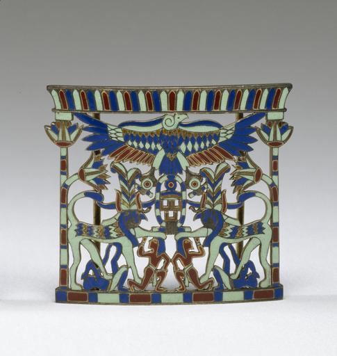 | Keywords: Tiffany and Company - Egyptianizing Brooch - Walters 571483.jpg In 1894 J de Morgan excavated several magnificent ancient pectorals from the tomb of Princess Mereret daughter of Sesostris III in Dahshur Egypt Soon after this discovery this faithful replica was made Unlike many Egyptianizing pieces this example copies the details of the original without major errors or changes; only the size and material are slightly varied silver and multicolored enamels replaced gold carnelian and faience The brooch in the form of a kiosk gives the names of the pharaohs Sesostris III and Amenemhet III from the middle of the 12th Dynasty 19th century BC Below the wings of a protective vulture the pharaohs are depicted as sphinxes slaying their enemies early Other date century 20 silver gilt enamel cm 5 08 5 87 accession number 57 1483 23195 Tiffany Co New York Henry Walters Baltimore by purchase Walters Art Museum Henry Walters Acquired by Henry Walters Bedazzled 5 000 Years of Jewelry from the Walters Art Museum Frist Center for the Visual Arts Nashville; The John and Mable Ringling Museum of Art Sarasota; The Walters Art Museum Baltimore 2006-2009 Bedazzled 5 000 Years of Jewelry El Paso Museum of Art El Paso 2010 place of origin New York USA Walters Art Museum license Jewellery in the Walters Art Museum Tiffany Co Egyptian revival art Ancient Egypt replicas |