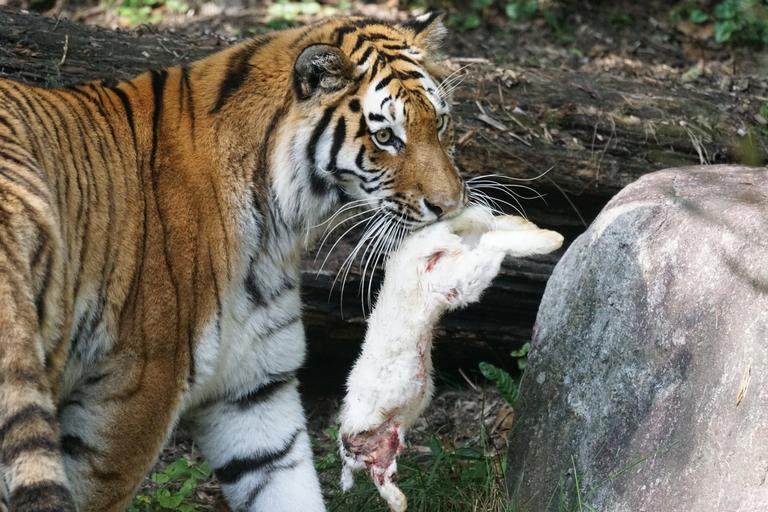 Keywords: tiger amurtiger predator cat carnivores siberian dangerous food hare zoo wildlife photography portrait