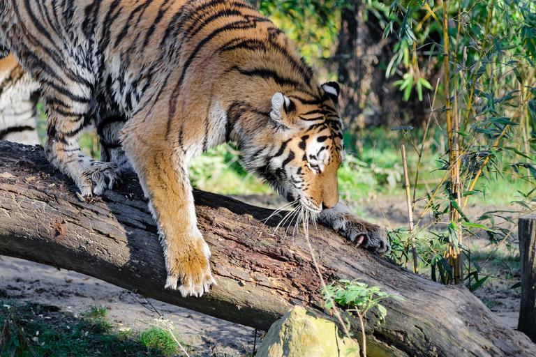 Keywords: tiger big cat predator nature wildlife zoo climbing carnivore feline mammal log portrait