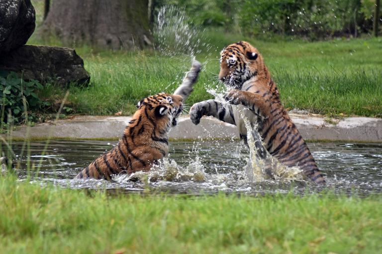 Keywords: tiger cat wild animal carnivore wildlife predator stripes siberian safari zoo wildcat playing fighting jungle feline cubs bengal