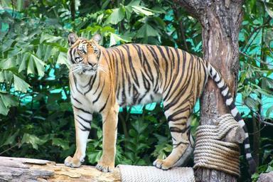 Keywords: tiger the prisoner nature zoo stripe yellow black tree wild animal the impressive thailand turkish cat her look rope