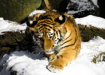 Keywords: tiger tiger cub cat young animal nuremberg wild winter cold young tiger close predator dangerous zoo watch animals tiergarten view