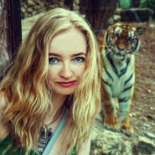 Keywords: tiger tigress zoo safari girl model view eyes safari park animals fur life wildlife animal summer