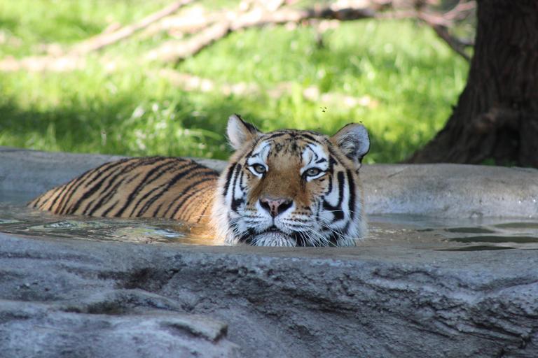 Keywords: tiger water swimming animal nature mammal wildlife wild orange black striped zoo