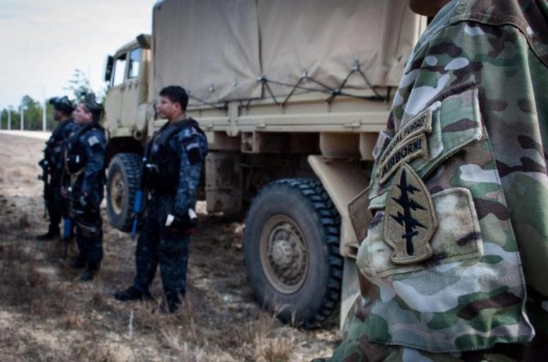 Keywords: TIGRES Eglin AFB 383941.jpg en A Green Beret from the 7th Special Forces Group Airborne observes Honduran Tigres as they conduct an after-action review of their operation on Eglin Air Force Base Feb 27 2015 2015-02-27 http //www army mil/article/143821/Special_Forces_Soldiers_train_Honduran_force/ Capt Thomas Cieslak other versions PD-USGov TIGRES 7th Special Forces Group United States Eglin Air Force Base Uploaded with UploadWizard |
