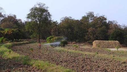Keywords: tilled land hay stack mango trees india tree organic agriculture outdoors environment trunk leaves branches nature