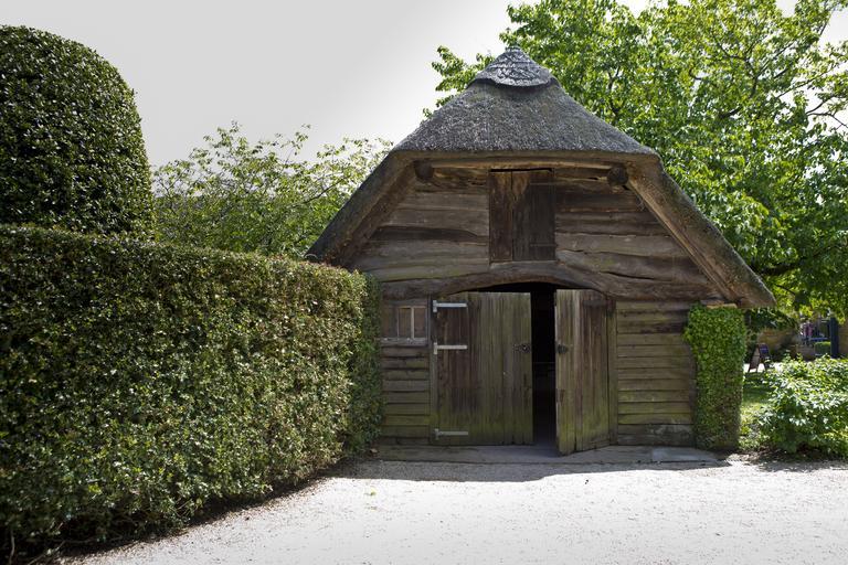 Keywords: timber barn thatched roof topiary hedging hidcote manor garden