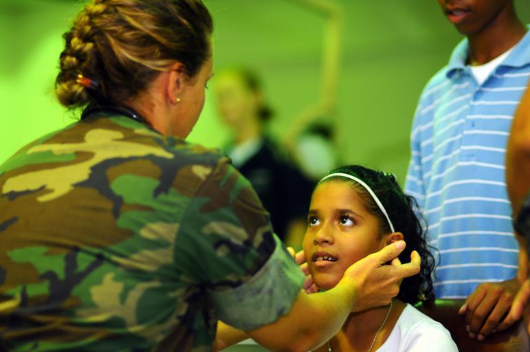 | Keywords: Time for a check-up DVIDS125402.jpg en Lt Cmdr Kathaleen Sikes a Navy nurse embarked aboard the amphibious assault ship USS Kearsarge gives a young girl a routine check-up at the Arima District Health Facility as part of the partnership between Continuing Promise 2008 and Trinidad-Tobago Kearsarge is the primary platform for the Caribbean phase of the humanitarian/civic assistance mission CP 08 an equal-partnership mission involving the United States Canada the Netherlands Brazil Nicaragua Colombia Dominican Republic Trinidad and Tobago and Guyana 2008-10-26 https //www dvidshub net/image/125402 081026-N-+++++-066 2008-10-30 23 37 ARIMA TT PD-USGov-Military-Navy USS Kearsarge LHD-3 Images from DoD uploaded by Fæ |