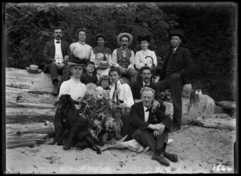 | Keywords: blackandwhite monochrome outdoor black and white Family and friends on Dominion Day VPL Accession Number: 7236 Date: July 1, 1905 Photographer/Studio: Timms, Philip Content: At Second Beach. The woman and child at centre are Timms' wife Lizzie and son Harold. A dog sits with the group. Topic: Portraits, Group Dogs Timms family Person: Timms, Harold Philip, 1900-1957 Timms, Elizabeth Maude Elena (Lizzie) (Slater) (Mrs. Philip Timms), 1874-1957 Location: British Columbia - Vancouver - Second Beach More information on our historical photograph collection: www.vpl.ca/historicalphotos Family and friends on Dominion Day VPL Accession Number: 7236 Date: July 1, 1905 Photographer/Studio: Timms, Philip Content: At Second Beach. The woman and child at centre are Timms' wife Lizzie and son Harold. A dog sits with the group. Topic: Portraits, Group Dogs Timms family Person: Timms, Harold Philip, 1900-1957 Timms, Elizabeth Maude Elena (Lizzie) (Slater) (Mrs. Philip Timms), 1874-1957 Location: British Columbia - Vancouver - Second Beach More information on our historical photograph collection: www.vpl.ca/historicalphotos |