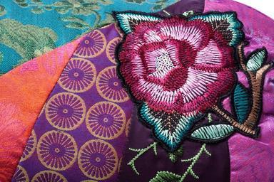 Keywords: tissue jacquardmusterung jacquardweberei woven fabric noble pattern flower pink red sequins iridescent various colors combined combination embroidery textiles pull through sewing threads ornate blossom bloom leaf needle painting pillow neck pillow fund background