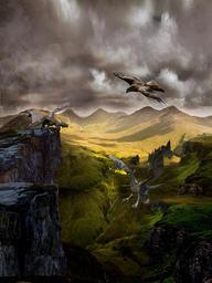 Keywords: titans dragons mountains sky fly forest freedom fire-breathing dragon landscape shadow history atmosphere middle ages adler clouds storm rock sunlight picturesque shadow play mood storybook mythical creatures dream world