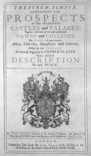 | Keywords: Title page of the Theatrum Scotiae.jpg en Title page of John Slezer's Theatrum Scotiae published 1693 2011-12-08 Scanned from K Cavers A Vision of Scotland 1993 author PD-old-100 Check categories 2011 December 9 en wikipedia John_Slezer 2 Uploaded with UploadWizard John Slezer |