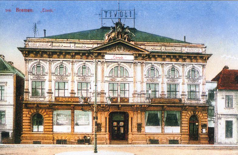 | Keywords: Tivoli-Theater - Bremen - 1908.jpg en Old postcard of the Tivoli-Theater in Bremen Germany built 1892 destroyed in the Second World War de Alte Postkarte des Tivoli-Theaters in Bremen 1892 erbaut im Zweiten Weltkrieg zerstört Herbert Schwarzwälder Das Große Bremen-Lexikon Edition Temmen Bremen 2003 Author 1908 Theaters in Bremen PD-old Postcards of Bremen 1908 in Bremen |