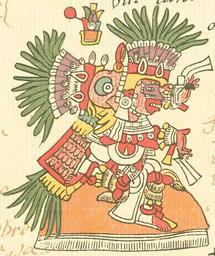 Keywords: Tlahuizcalpantecuhtli.jpg The Aztec god Tlahuizcalpantecuhtli Codex Telleriano-Remensis century 16 author PD-art Figures in Codex Telleriano-Remensis Tlahuizcalpantecuhtli