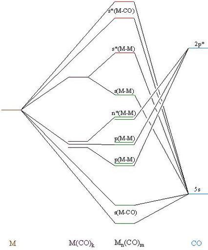 Keywords: TMclusterCO.JPG en General metal carbonyl cluster MO diagram created in Chem draw std copied from Russian Chemical Reviews 54 4 1985 own Chem507f094 2009-12-3 Molecular orbitals energy levels