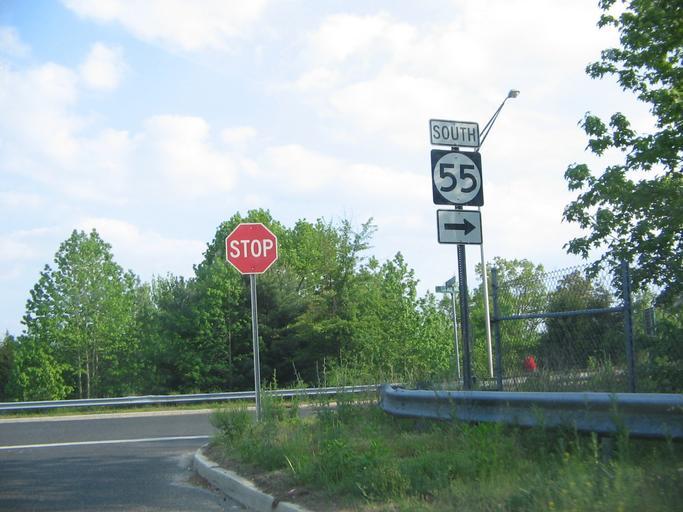 Keywords: To 55.jpg Signage for Route 55 from South Broad Street at the intersection with the Little Mill Road interchange Route 82 New Jersey Route 55