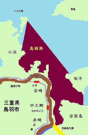 Keywords: Toba Port Map.png en This is the map of the port of Toba Mie Japan ja 三重 の鳥羽港の 図 赤紫色の部分が鳥羽港である Own Miyuki Meinaka 2009-05-05 Public domain Nothing Iseshima national park Port of Toba Toba Mie