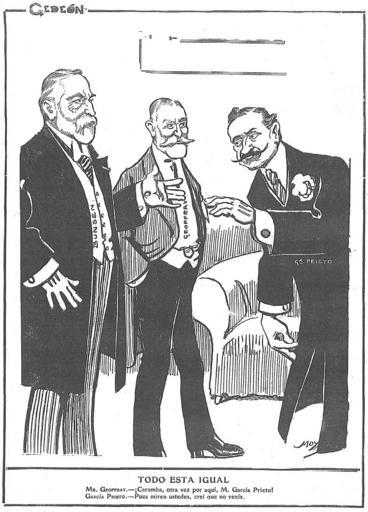 Keywords: Todo está igual, de Moya.jpg es Todo está igual 1912-01-28 Gedeón Todo está igual 844 9 http //hemerotecadigital bne es/issue vm id 0003221715 page 9 date 1912 1 28 1889-8734 Creator Joaquín Moya PD-Scan PD-old-auto-1923 1928 other versions Caricatures by Joaquín Moya in Gedeón Manuel García Prieto Léon Geoffray Maurice de Bunsen