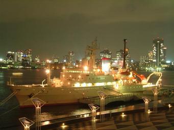 Keywords: tokyo japan port harbor water ship dock pier skyline skyscraper buildings night evening lights reflections urban city cities outside