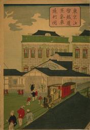 | Keywords: Tōkyō shiodome tetsudō jōkisha tsūkō no zu.jpg Tōkyō shiodome tetsudō jōkisha tsūkō no zu 京汐留鉄道蒸気車 行図 http //hdl loc gov/loc pnp/cph 3g10437 ~ 1870 Ikkei artist Public Domain PD-Japan Shiodome Freight Terminal Ukiyo-e of rail transport 1870 in Japan 1870 in Tokyo Built in Japan in 1872 |