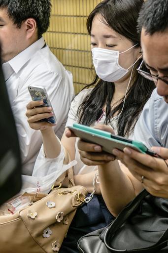 Keywords: tokyo woman modern mouth guard urban ubahn metro smartphone japan mobile phone manga pokemon pokemon go