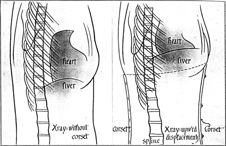 Keywords: Toleration of the corset1036fig17-18.png Toleration of the corset American journal of obstetrics and diseases of woman and children 1911; page 1036 1910 Dickinson Robert L PD PD-old Toleration of the corset Anatomy of the chest