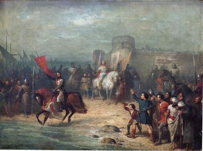 | Keywords: Toma de posesión de las aguas de Cádiz por Alfonso X de Castilla (Museo de Jaén).JPG Esta obra conocida también como Santa Cruz sobre las aguas es un boceto del lienzo homónimo que se conserva en el Alcázar de Segovia y que representa al rey Alfonso X de Castilla 1221-1284 tomando posesión de las aguas de la ciudad de Cádiz que fue conquistada a los musulmanes por las tropas castellanas en 1264 ~ 1865 Oil on canvas cm 54 41 Institution Museo del Prado Depositado en el Institution Museo de Jaén https //content2 museodelprado es/imagenes/Documentos/imgsem/00/0038/00384038-e880-4256-bbb5-8979348530c6/a173ac46-5a43-47ba-b503-5fb8136ec593 jpg http //ceres mcu es/pages/Viewer accion 41 Museo AMuseo MJ Ninv DE/BA00376 txt_id_imagen 1 txt_rotar 0 txt_contraste 0 txt_zoom 10 cabecera N viewName visorZoomhttps //www museodelprado es/coleccion/obra-de-arte/santa-cruz-sobre-las-aguas-boceto/00384038-e880-4256-bbb5-8979348530c6 searchid ec69147b-1b58-95b9-29ae-dc18a07bfa3d PD-old-100 accession number P07848 other versions Alfonso X of Castile in paintings Spanish 19th-century paintings in the Museo del Prado 19th-century paintings in the Museum of Jaén Cádiz in art Ricardo Balaca |
