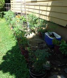 Keywords: Tomato plants and others growing in NJ.jpg en Plants growing along the side of a house in New Jersey including tomato plants lettuce squash and others 2012-06-01 own Tomwsulcer cc-zero Uploaded with UploadWizard Tomato crops