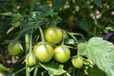 Keywords: tomato summer vegetable harvest organic green nature freshness produce garden fresh tomatoes
