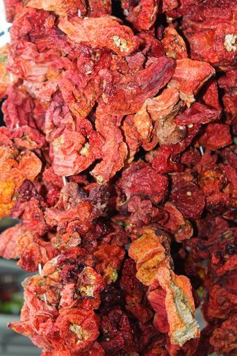 Keywords: tomatoes dried dried tomatoes fruit vegetables eat food red healthy vegetarian market sweet tomatenrispe nachtschattengewächs solanum lycopersicum kitchen fruity benefit from