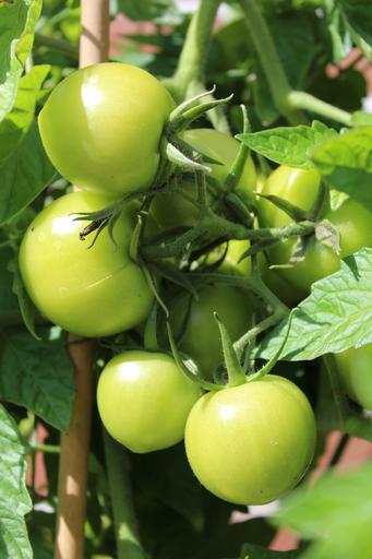 Keywords: tomatoes green immature garden vegetables tomato shrub panicle food plant vegetable growing infructescence trusses