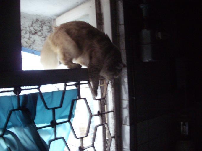 | Keywords: Tomcat 'Matata' jumping from the kitchen window ledge.(Friday 21-1-2011).JPG en Traditional Persian tom-cat Matata at 22 months of age jumping down from his favourite perch the window kitchen-ledge He loves sitting on this narrow ledge at home in Mumbai and watch the World 5 floors below A slip from this ledge means certain death which proves the fact that cats like living dangerously own Rudolph A furtado Friday 21-1-2010 Jumping cats Cats at windows | ||||