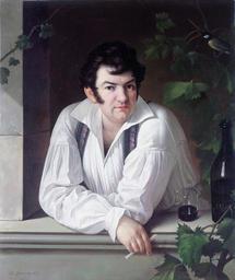 Keywords: TomincJozef-avtoportret.JPG Artwork Creator Giuseppe Tominz 1826 Oil on canvas cm 88 74 Institution National Gallery of Slovenia NGS2008 PD-old-100 DEFAULTSORT 1830; Giuseppe Tominz Male portrait paintings by Giuseppe Tominz 19th-century paintings in the National Gallery of Slovenia 19th-century self-portrait paintings of men 1826 oil on canvas paintings 1826 paintings in Slovenia 1826 portrait paintings Male 19th-century men looking at viewer in art 19th-century oil on canvas paintings in Slovenia 19th-century oil portraits of men at half length 19th-century portrait paintings with birds Men facing left in art 19th-century portrait paintings in Slovenia Portrait paintings of men with animals Portraits of people drinking Portraits through a window Self-portraits in Slovenia Suspenders Wine drinking in art |
