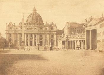 Keywords: Tommaso Cuccioni Piazza San Pietro.jpg Tommaso Cuccioni   1864 Roma Piazza San Pietro ca 1858 taken from the destroyed Piazza Rusticucci Photography gold-toned albumen print 22 8 x 31 3 cm PD-Art Source http //www bassenge com/ Sepia photographs Historical images of Saint Peter's Square 1858 Tommaso Cuccioni Albumen prints Chrysotype Facade of Saint Peter's Basilica 1858 Colonnades in Saint Peter's Square 1858 Vatican obelisk 1858 1858 in Rome Images from Galerie Bassenge Artworks missing infobox template