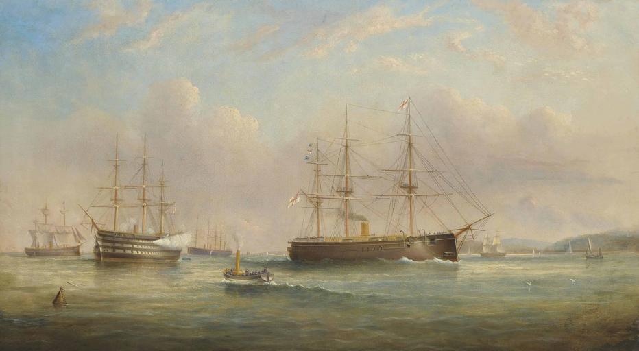 | Keywords: Tommaso de Simone (attrib.) - Royal Navy ships.jpg  Artwork Attributed to Tommaso de Simone 1805 - 1888 oil canvas cm 61 106 7 accession number object history credit line exhibition history christies online 5701499 8996 792 London 2 July 2013 PD-old-100 Tommaso de Simone Paintings of ships |