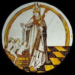 Keywords: Tondo St Nicolas MNMA Cl23730.jpg Artwork St Nicholas and the three children rescued from the butcher Stained glass white glass grisaille silver sulfide and lead France ca 1510-1530 Diam 20 cm 7 ¾ in Museum Musée national du Moyen Âge Room 1 temporary exhibition object history credit line Gift of the ARMMA Friends of the Museum 2002 accession number Cl 23730 Jastrow 2006 other versions Saint Nicolas sauvant les trois petits enfants du saloir du boucher Vitrail verre blanc grisaille jaune d'argent et plomb France vers 1510-1530 Stained glass in the Musée national du Moyen Âge Grisaille stained glass windows Round pictures Saint Nicholas on stained glass windows in France 16th-century stained glass windows in France Saint Nicholas and the three children on stained glass windows |