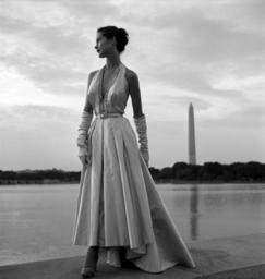 Keywords: Toni Frissell, Fashion model, Washington, D.C., 1949.jpg Fashion model posing in an evening gown on the steps of the Jefferson Memorial Washington District of Columbia with Tidal Basin and Washington Monument in the background Photograph by Toni Frissell June 1949 From the http //memory loc gov/ammem/awhhtml/awpnp6/frissell_coll html Toni Frissell collection at the http //memory loc gov/ammem/index html U S Library of Congress http //www flickr com/photos/trialsanderrors/3810353359/ Toni Frissell Fashion model Washington D C 1949 1949-06 Creator Toni Frissell 38 881412 -77 036519 source Flickr Toni Frissell Fashion in 1949 Black and white photographic portraits of women 1949 in Washington D C Toni Frissell Standing Black and white necklines Black and white photographs of people watching Black and white photographs of female arms Females looking left People looking back right People with structures Washington Monument from the Jefferson Memorial