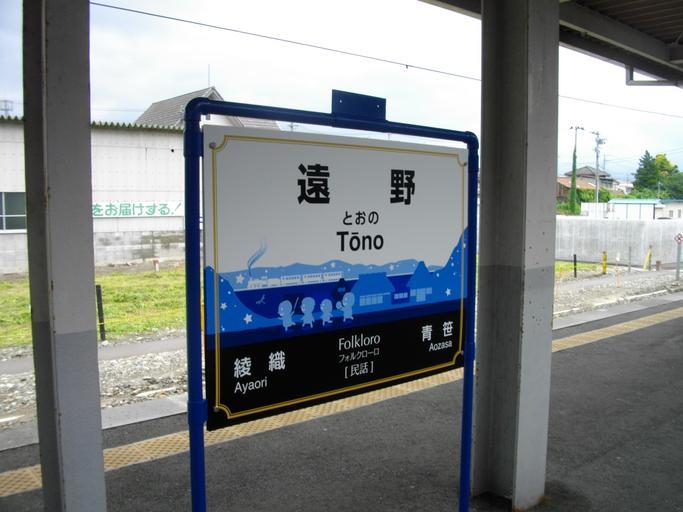 Keywords: Tono Station Sign.JPG Tono Station Sign 遠野駅駅名標 own 11 August 2014 2014年8 11日 Abasaa あばさー Train station signs in Iwate prefecture Tono Station
