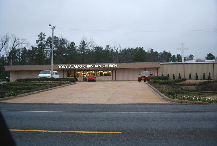 | Keywords: Tony Alamo Christian Church.jpg Tony Alamo Christian Church headquarters of Tony Alamo Christian Ministries formerly an independent retail establishment known as Big Stop Grocery bisected by the north city limit of Fouke Arkansas between U S Route 71 foreground and the compound behind the church building wherein reside Tony Alamo and his followers Idling in the foreground is a red Chevrolet pickup truck operated by one of several armed employees of R G Associates Security an independent contractor of Alamo Ministries since September 2006 Another vehicle a black sport utility vehicle situated off to the left side of this photograph pursued the shitless photographer northbound on US 71 for approximately nine miles digital camera 15 40 29 December 2006 UTC en user freakofnurture Public domain 2006 in Arkansas Modern movement churches in Arkansas Grocery stores in Arkansas Fouke Arkansas |