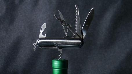 Keywords: tool army knife multifunction open corkscrew glass wine bottle