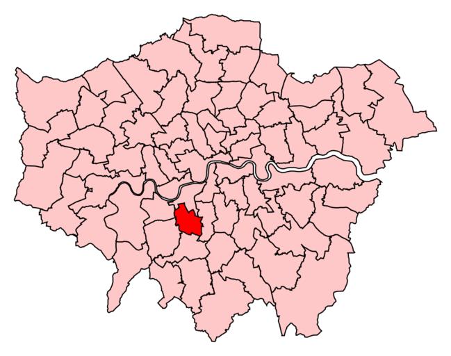 Keywords: Tooting2007Constituency.svg Map of the new UK Parliament constituency of Tooting 2008-07-13 own assumed Wereon Locator maps of parliamentary constituencies of London