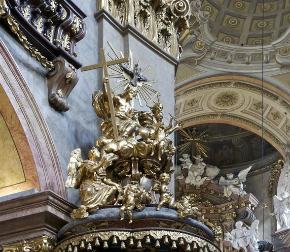 | Keywords: Top pulpit Peterskirche Vienna.jpg 48 209492 16 370026 fr La Sainte-Trinité au sommet de la chaire de la Peterskirche à Vienne Autriche en The Holy Trinity at the top of the pulpit of the Peterskirche in Vienna Austria 2012-02-20 own Jebulon cc-zero QualityImage Uploaded with UploadWizard Gilding Sculptures of the Holy Trinity in Austria Sculptures of angels Putti in Austria Pulpit of St Peter's Church Vienna Quality images by Jebulon Quality images of churches in Austria | ||||