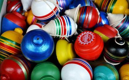 Keywords: tops collection toys colorful wooden string spin play recreation kids children plaything painted balance