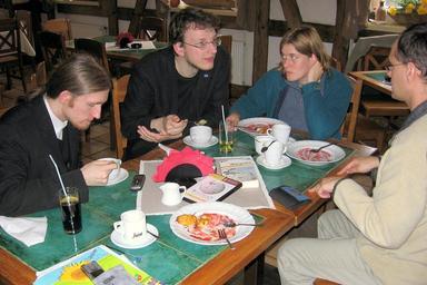 Keywords: Tor-Mathias-Nina-Polimerek---pozlotowe konsultacje miedzynarodowe.jpg Polish Wikimedia Meeting Wrocław April/May 2006 May 1st from left TOR Mathias Nina Polimerek 2006-05-01 own assumed Julo 2006 Wikimedia Polska meetup in Wrocław TOR