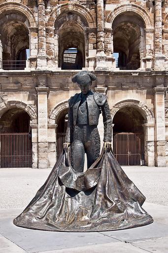 Keywords: torero arena nimes france south of france statue bullfighter bull fighting
