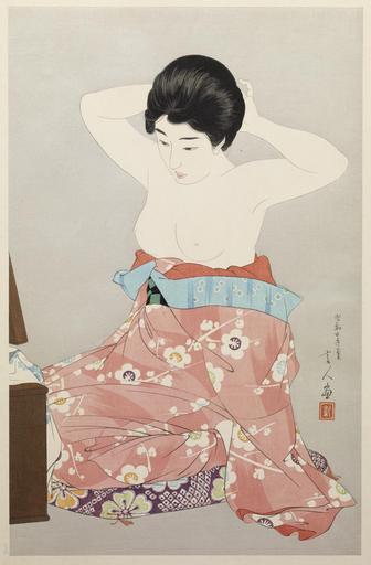 | Keywords: Torii Kotondo - Woman Before a Mirror - Walters 95890.jpg 1930 woodblock print on paper Paper cm 46 8 31 ; Image cm 41 26 2 accession number 95 890 82800 C Bertram Hoffberger January 23 1989 by purchase from Tsuru Gallery New York City Erna Hoffberger Upperville Virginia 1997 by inheritance Monika Griff Silver Spring Maryland October 19 2010 by inheritance Walters Art Museum Gift from the Erna and Charles Bertram Hoffberger Collection 2011 place of origin Japan PD-Japan Japanese prints in the Walters Art Museum Historic samurai prints Media contributed by the Walters Art Museum needs category review Torii Kotondo |